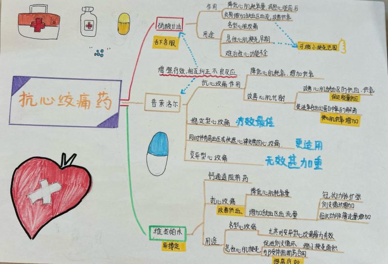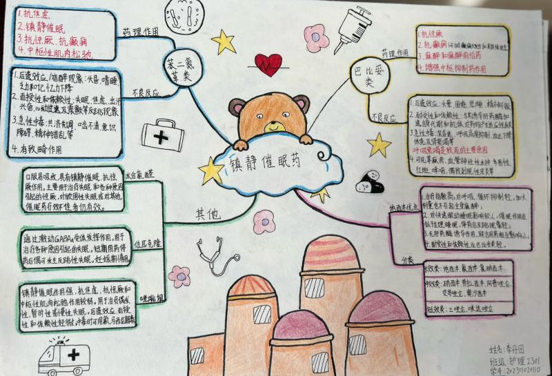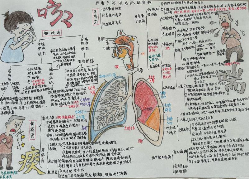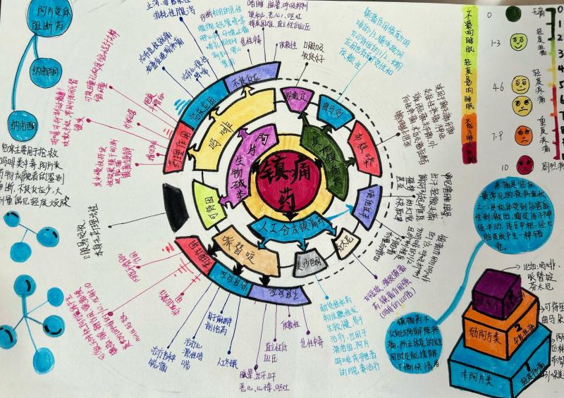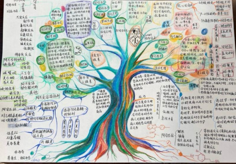 大赛自启动以来,吸引了众多学生参与,共收到各系部学生作品200余份。参赛学生围绕药理学的知识体系,精心构建思维导图,从药物分类、作用机制、临床应用及不良反应等知识层面出发,展现出扎实的专业基础和独特的创意视角。有的作品色彩丰富、图形多样,便于记忆;有的运用简洁的线条和精准的关键词,精准提炼核心要点,充分体现了思维导图在知识梳理中的高效性。大赛评选出一等奖3份、二等奖6份、三等奖9份、优秀奖12份。