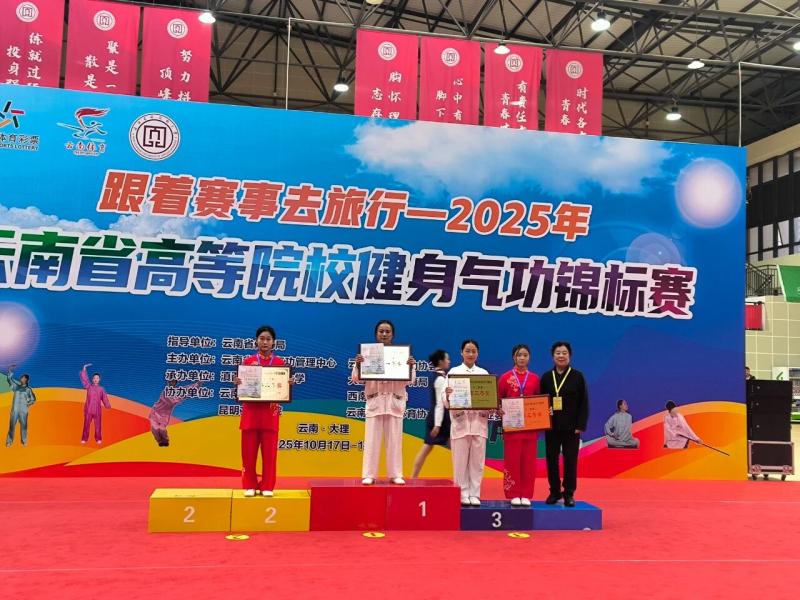 为弘扬中华优秀传统文化,推动健身气功在青少年群体中的普及与发展,云南省体育局于2025年10月18日至19日在滇西应用技术大学成功举办“云南省高等院校健身气功锦标赛”。js3845金沙线路10支队伍凭借整齐划一的动作、沉稳大气的表现,共获得集体项目一等奖1项、二等奖6项、三等奖13项,荣获“体育道德风尚奖”,共计21项。