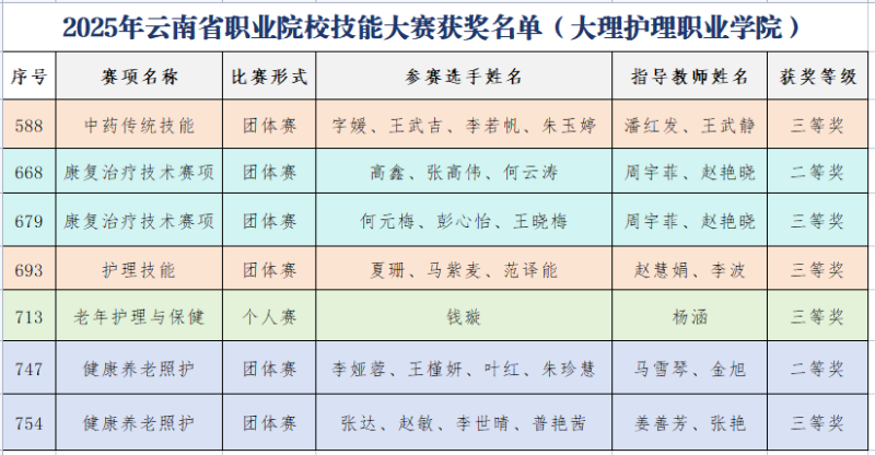 2025年云南省职业院校技能大赛已圆满落幕,经评审、公示。我校共选派 7 支赛队参与 5 个赛项的角逐,共有22名学生和11名指导教师获奖,其中荣获二等奖2项,三等奖5项。