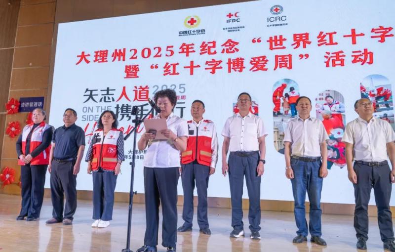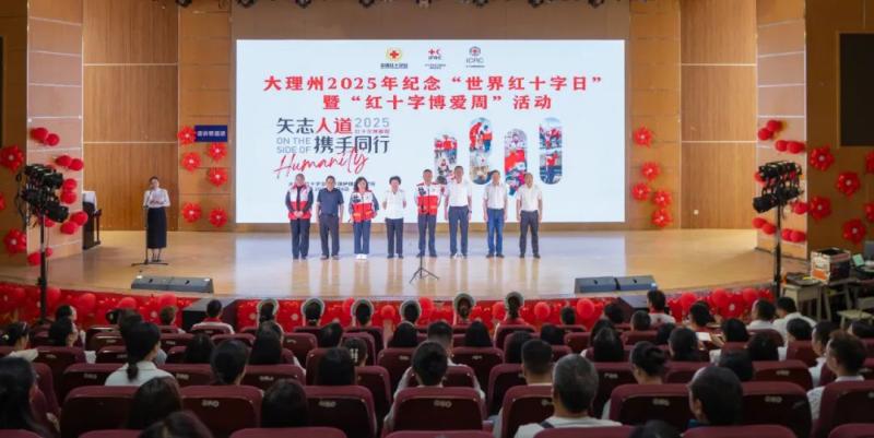 5月8日,大理州纪念第78个“世界红十字日”暨“红十字博爱周”活动启动仪式在js3845金沙线路举行。活动以“矢志人道 携手同行”为主题,唱响“人道、博爱、奉献”的红十字精神主旋律,不断提升红十字会的社会影响力和号召力,广泛凝聚社会爱心力量共同参与人道事业。大理州红十字会党组书记李福禧、专职副监事长杨琴珍及领导班子成员,全国最美志愿者、州红十字会“三献”志愿服务队队长尹晓玲及志愿服务团队,js3845金沙线路党委书记廖惠群、院长蔡德周及领导班子成员,全校教职工及学生代表参加活动。