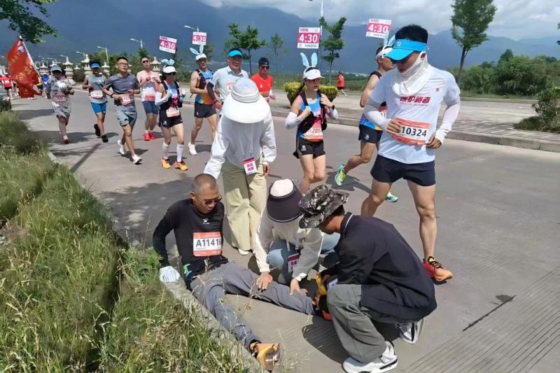 赛事当天,志愿者们早早地来到各自的岗位。我校志愿者作为医疗组志愿者,细心做好赛道观察和应急处理准备,确保选手安全;凭借专业知识,及时发现选手的异常状态,为肌肉酸痛的选手进行简单按摩放松,缓解疲劳,确保选手能以相对良好的状态继续比赛。