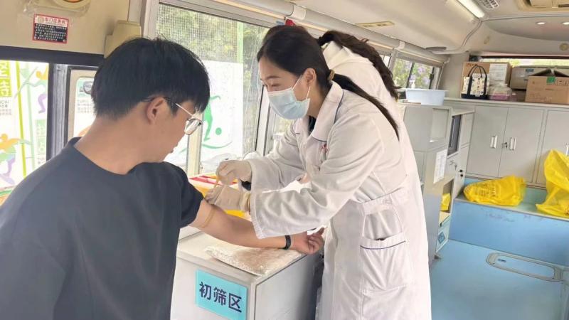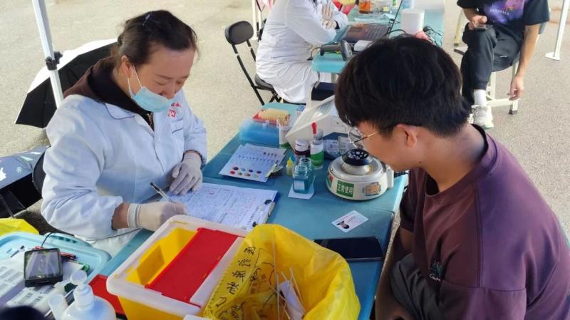 师生们在志愿者的引导下有序登记、体检、化验和献血,每个环节有条不紊。队伍里,既有多次献血的“老将”,也有初次尝试的“新兵”。虽然天空细雨纷飞、寒意袭人,却挡不住现场涌动的献血热情。师生们纷纷表示,献血是一种公益行为,能够帮助到那些需要帮助的人,自己也会感到无比自豪。