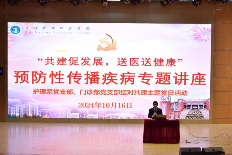 10月16日,为进一步做好党支部结对共建工作,结合js3845金沙线路“中国计生协2024年青春健康高校项目”的工作计划,护理系党支部、门诊部党支部联合开展结对共建主题党日活动:“共建促发展,送医送健康”预防性传播疾病专题讲座,此次活动邀请到门诊部党支部赵丽娟书记、护理系党支部夏双琼老师主讲。活动共计500余名师生参与。活动由护理系团委、青春健康同伴社承办。