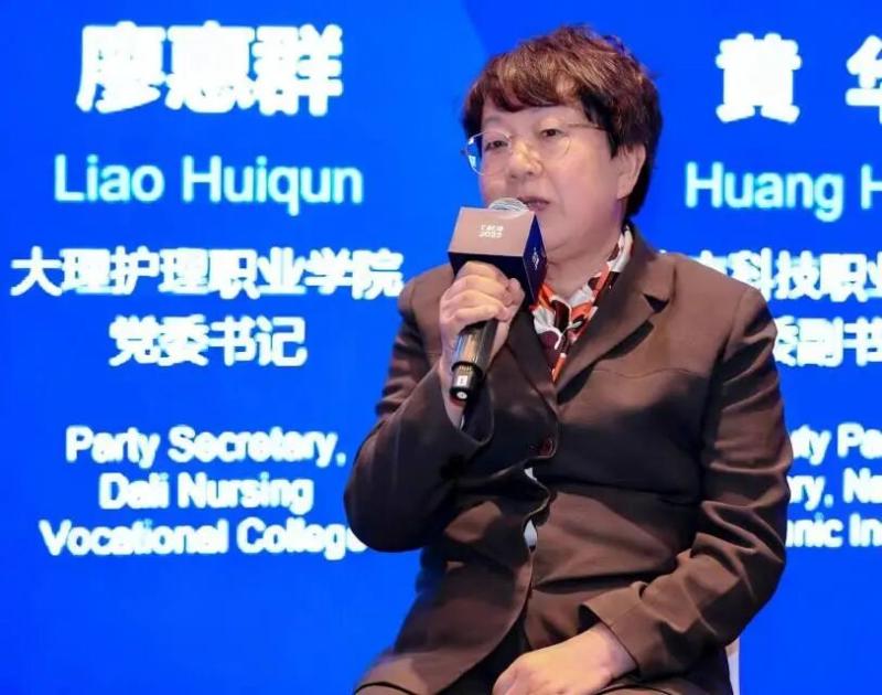 在“匠谷圆桌对话”环节,廖惠群书记作为发言嘉宾,与来自联合国教科文组织、国内外知名院校及跨国企业的代表们展开了深入交流。她围绕“国际化办学与产教融合”核心议题,结合js3845金沙线路办学特色与实践经验,分享了学校在深化产教融合、推进“职教出海”和培养国际化护理人才等方面的探索与思考。她强调,职业教育的高质量发展必须紧密对接产业需求,通过“引进来”与“走出去”相结合的双轨策略,既要借鉴国际先进理念,也要积极输出中国标准与模式,服务“一带一路”共建国家的产业经济发展。