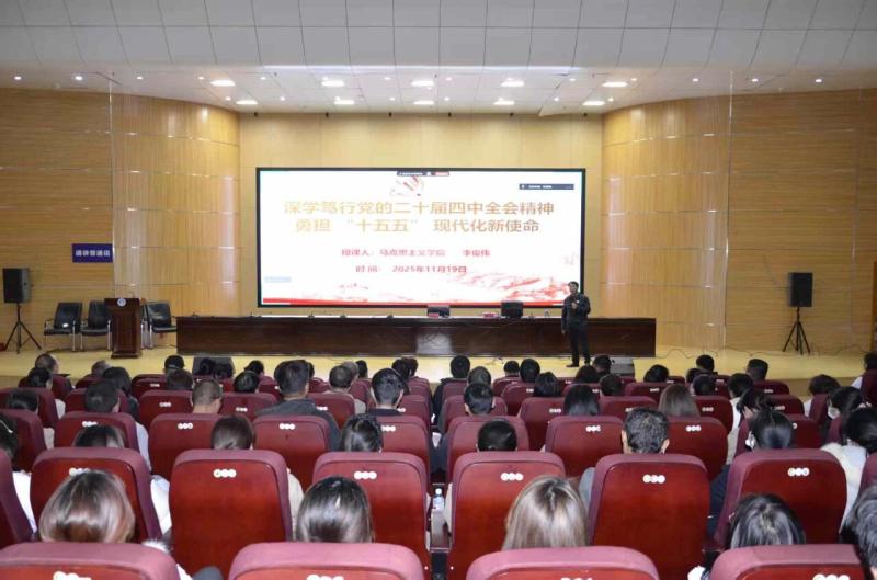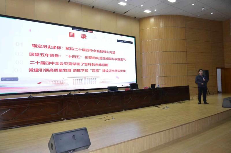 11月19日,js3845金沙线路举行学习贯彻党的二十届四中全会精神宣讲报告会,深入学习领会、全面准确把握党的二十届四中全会精神的丰富内涵与核心要义。学校马克思主义学院副教授李俊伟同志作专题宣讲报告,学校党委书记廖惠群同志主持报告会。