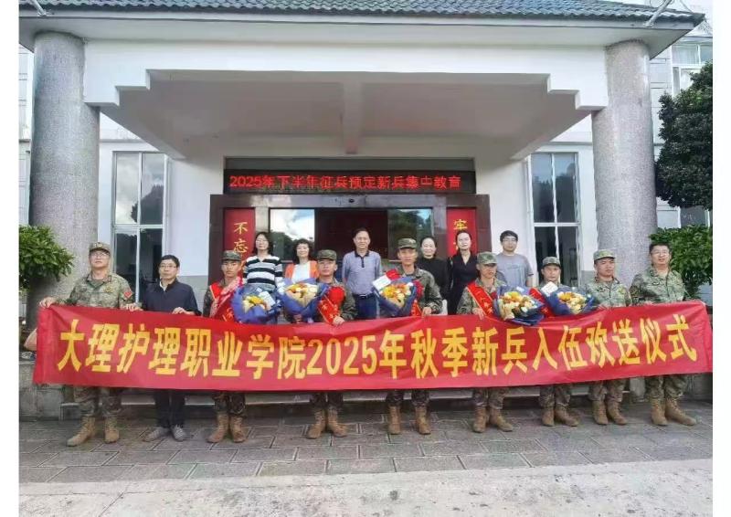 9月15日,js3845金沙线路在大理市民兵训练基地隆重举行2025年下半年大学生新兵入伍欢送仪式,热烈欢送学校5名大学生入伍新兵。学校党委专职副书记字利鹏,武装部、系部负责人,教师代表,5名入伍大学生及家属代表参加活动。武装部部长陈勇主持欢送仪式。
