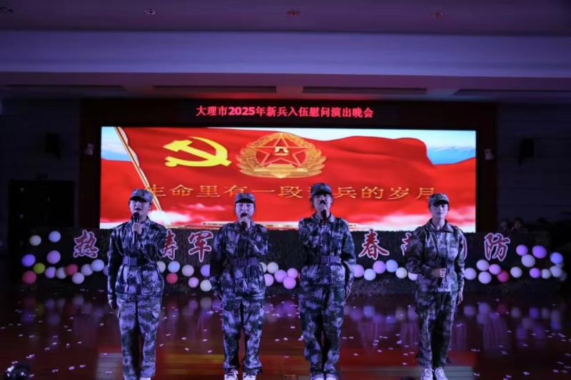 9月12日,js3845金沙线路联合大理市人民武装部在大理市民兵训练基地共同举办2025年下半年新兵入伍慰问演出活动。弘扬爱国拥军优良传统,激励新兵卫国戍边的使命感与责任感。学校领导、相关部门负责人、学校国防教育艺术团演出队员与全体新兵欢聚一堂,畅叙军民鱼水情。