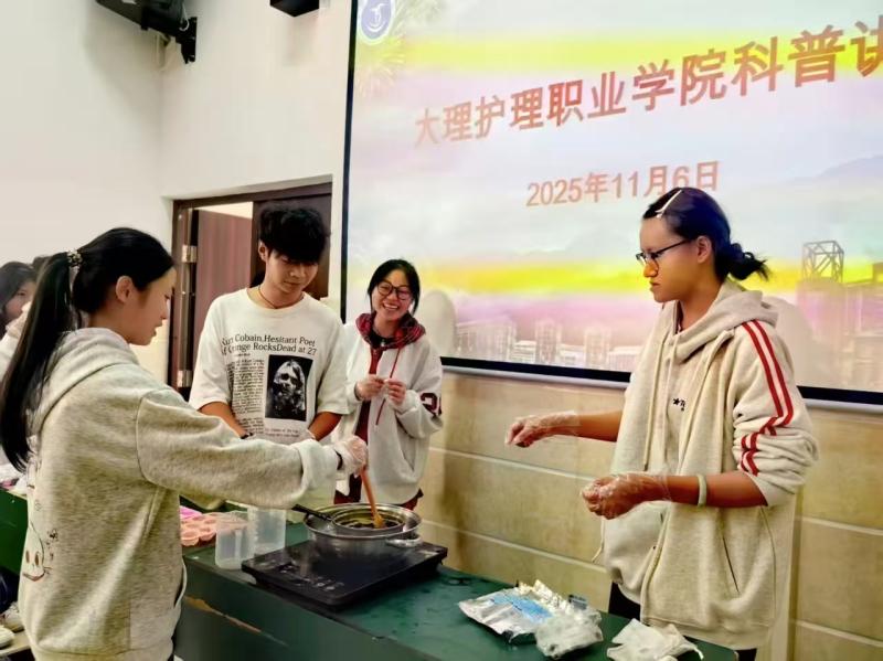 11月6日,js3845金沙线路邀请大理市第一人民医院药学部主任聂彩霞主管药师团队,为药学和中药学两个专业学生开展甲流防控专题科普讲座,开展手工皂制作、酸梅汤熬制等沉浸式科普实践活动,以“理论宣讲+实操体验”的创新形式,为师生们打造了一场兼具专业性、实用性与趣味性的医药科普盛宴。