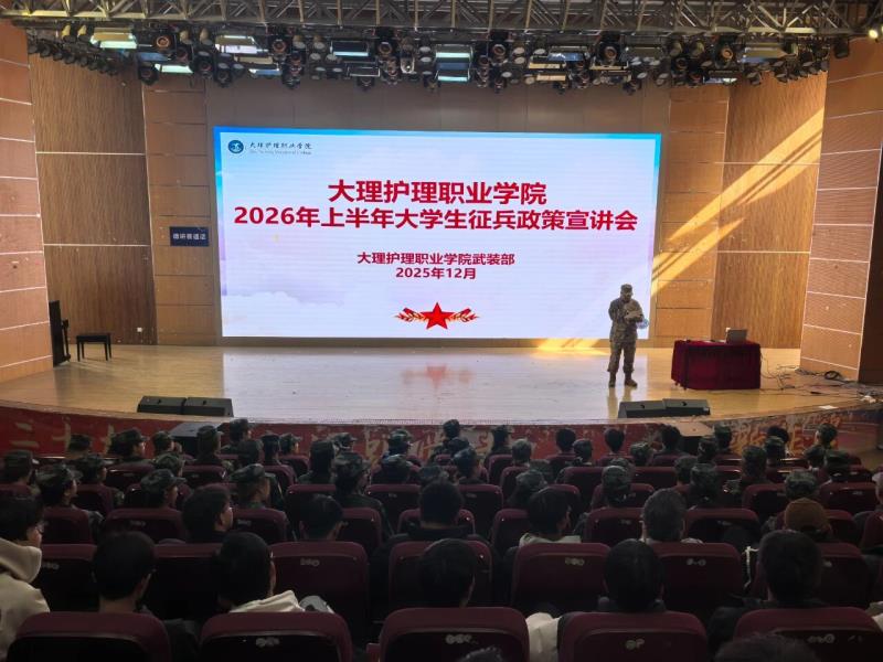 宣讲会上,大理市人民武装部普参谋全面系统解读了2026年度大学生征兵政策,涵盖报名条件、流程安排、优待政策及军旅发展路径,并现场与学生互动答疑。我校两名退役学生结合亲身服役经历,生动讲述了部队锤炼对个人意志、能力素养及价值观的全面提升,清晰展现了军营与校园衔接的成长轨迹,极大增强了征兵宣传的感染力与说服力。大理普瑞眼科医院专家聚焦职业发展等主题进行了专业讲解,明确表示将为学子入伍前后及退役后的职业发展提供坚实支撑。